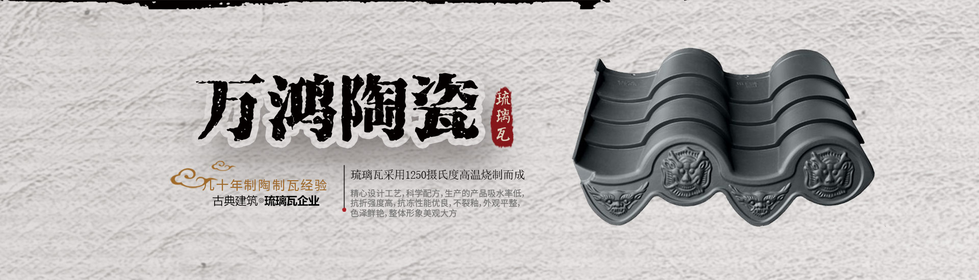 宜興市萬鴻陶瓷有限公司是國內(nèi)生產(chǎn)古建琉璃瓦企業(yè),也是宜興市琉璃瓦行業(yè)龍頭骨干企業(yè)。琉璃瓦采用1250攝氏度高溫?zé)贫桑咀浣?jīng)濟發(fā)達的宜興市丁山鎮(zhèn),臨近寧杭高速公路、新長鐵路、錫宜高速和104國道,交通十分便利。  萬鴻陶瓷擁有幾十...